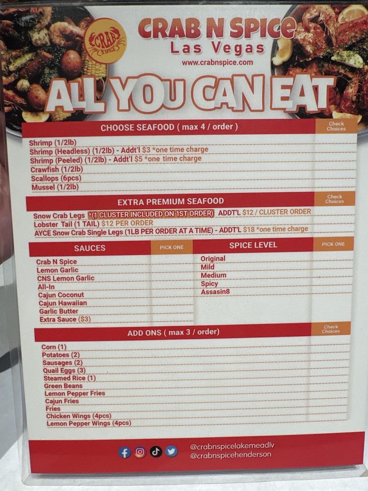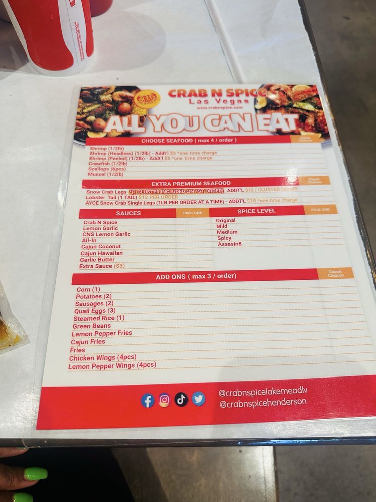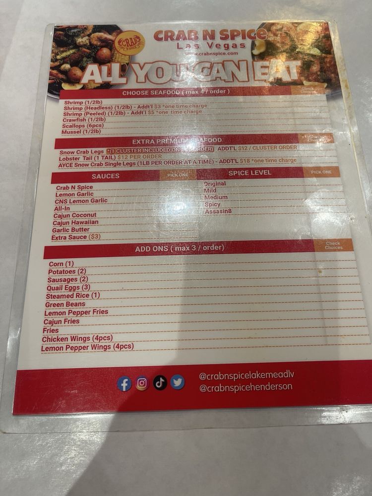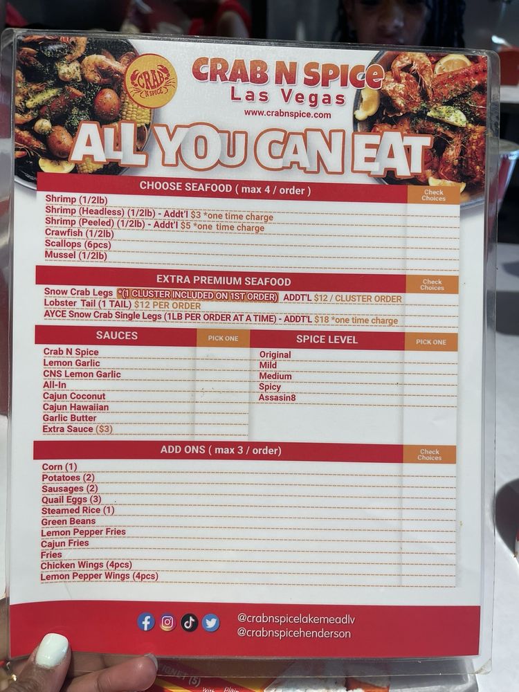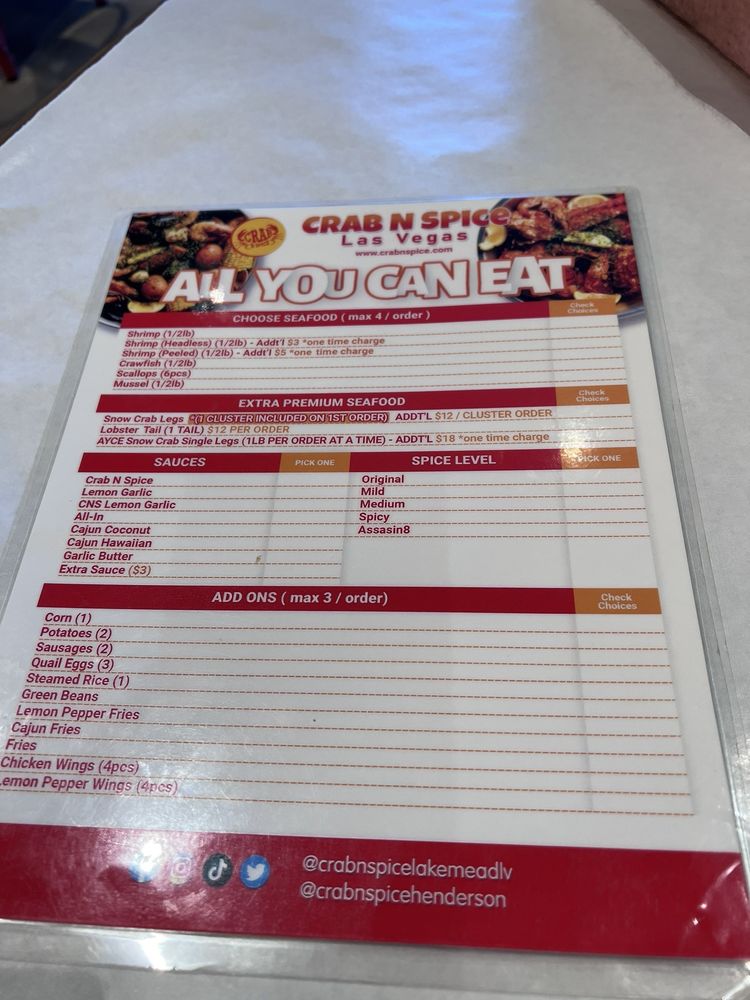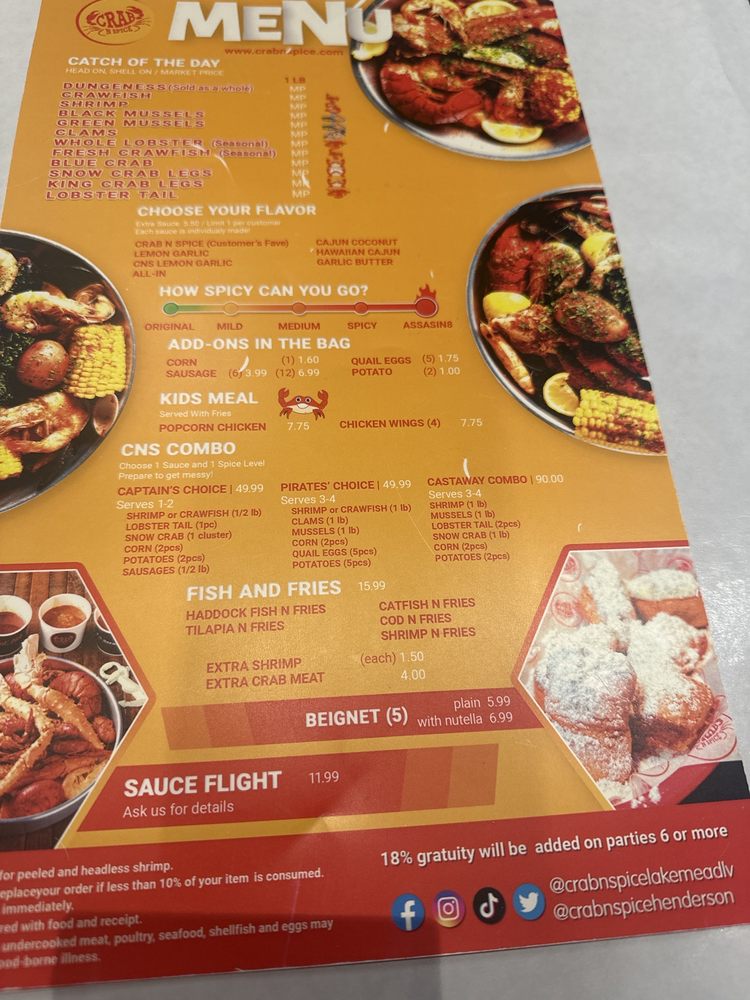 Crab N Spice - Lakemead Blvd Las Vegas is a seafood haven offering a wide range of utilities such as reservations, delivery, and takeout. Located at 7501 W Lakemead Blvd Ste 100 in Las Vegas, this restaurant provides a casual dining experience with options for private dining and outdoor seating. Customers rave about the fresh and flavorful seafood dishes, with a popular choice being the unlimited seafood package where you can enjoy different flavors with each refill. The atmosphere is beachside-chic, and the staff is praised for their friendliness and exceptional service. The sauces are a highlight, with the "all in" sauce being a must-try according to patrons. Don't miss out on the Happy Hour specials and the option to add on whole lobsters or lobster tails to your meal. Enjoy a top-notch seafood experience at Crab N Spice - Lakemead Blvd Las Vegas.